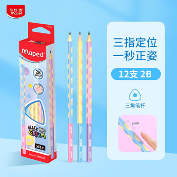 马培德Maped 奶油色洞洞铅笔12支2B 儿童铅笔小学生书法写字绘图考试2b铅笔一二三年级文具853101CH