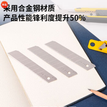 得力(deli)2011F大号美工刀片18mm不锈钢介刀片裁纸工业用刀片【白刃厚0.5mm】(单位:1盒装)(银色)