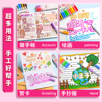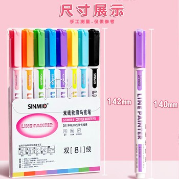 金值 12色加粗珠光双线空心轮廓笔 荧光笔双色笔闪光笔手抄报专用笔彩笔手账笔果冻笔马克笔