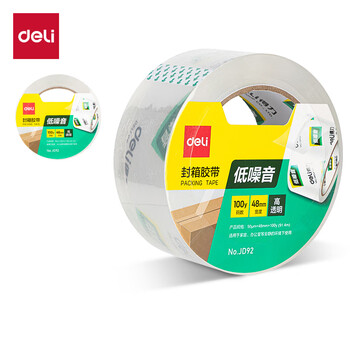 得力(deli)低噪音封箱胶带/打包胶带 48mm*100y*50μm(91.44m/卷) 单卷装 办公用品 JD92