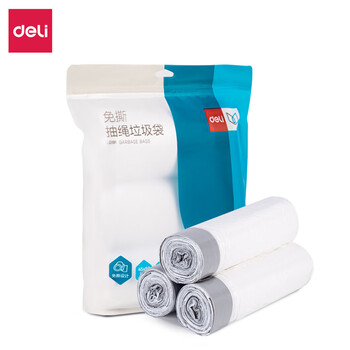 得力(deli)免撕抽绳垃圾袋(45*50cm)3卷(90只)垃圾分类 办公用品 白色LQ191