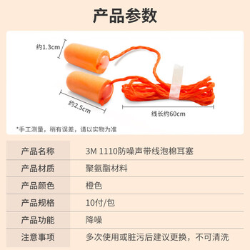 3M 隔音降噪耳塞 办公睡觉驾驶射击工作装修学习 1110带线耳塞 [经济实惠】10付装