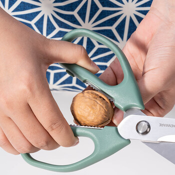 得力(deli)剪刀厨房家用食品剪 可夹核桃多功能不锈钢剪骨剪子 鸡骨剪 绿 TJ20