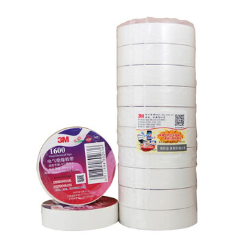 3M 1600# 办公家装 通用型电工电气绝缘胶带 无铅阻燃耐高温 白色 18mm*20m*0.15mm 5卷装