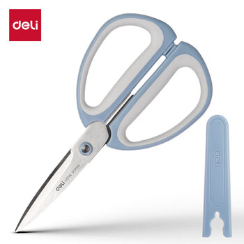 得力(deli)198mm大号家用剪刀 不锈钢厨房剪刀 手工缝纫办公剪子 包胶手柄 蓝 TJ14