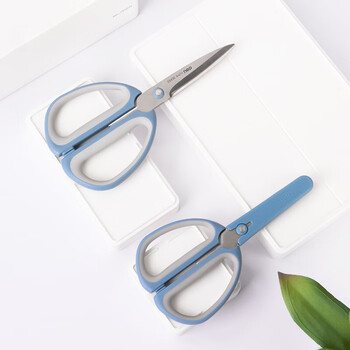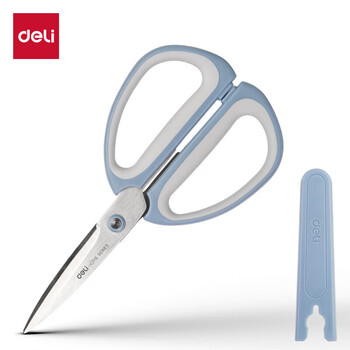 得力(deli)176mm中号家用剪刀 不锈钢厨房剪刀 手工缝纫办公小剪子 包胶手柄 蓝 TJ13