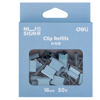 得力(deli)纽赛推夹器夹纸器彩色补充夹 文件夹子备用夹 蓝 NS086