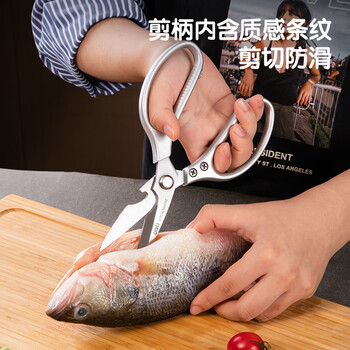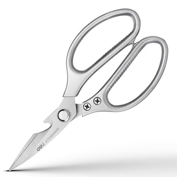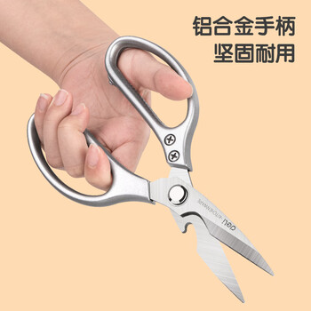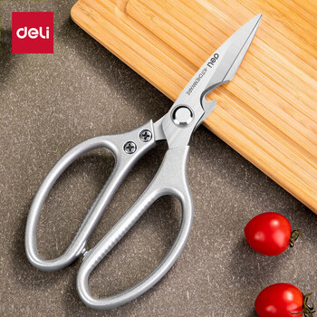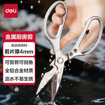 得力(deli)食品级全钢厨房剪刀 多功能家用不锈钢剪骨剪子 鸡骨剪 铝合金手柄 银 TJ25