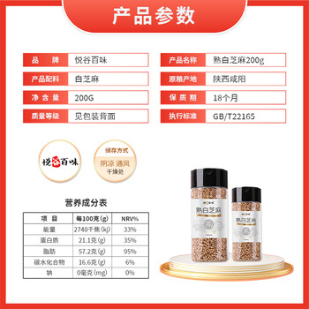 悦谷百味 熟白芝麻 200g *1