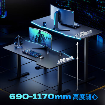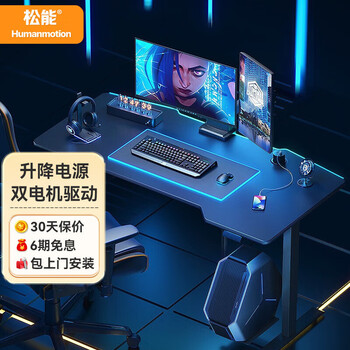 松能黑鲨升降桌双电机电竞升降桌游戏电脑桌-带电源&灯带M3-X黑鲨X
