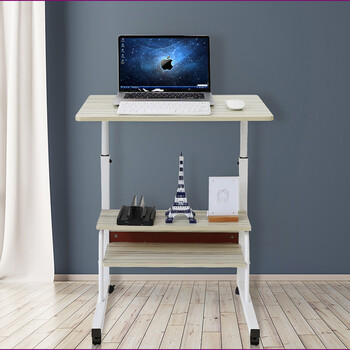 倍方床边电脑桌 白枫木带置物柜懒人可移动升降桌 家用笔记本桌1831