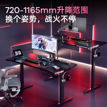 乐歌黑武士电竞桌电动升降桌电脑办公桌碳纤维纹理电竞板1.4M