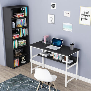 帅力 电脑桌 钢木带书架笔记本书桌简约台式学习办公桌子 黑胡桃色