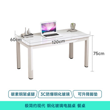 凡社 电脑桌 台式家用现代简约加粗桌腿学习书桌子 办公电脑桌钢化玻璃 120*60cm 白色 FZ3WW3