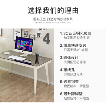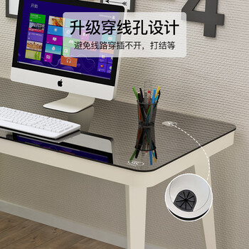 凡社钢化玻璃电脑桌台式 玻璃桌面书桌工作台加厚北欧简约办公习桌子