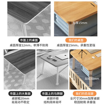 小匠材【超大号】床上书桌电脑桌折叠桌学习桌黑拉丝80*60*35【旗舰款】