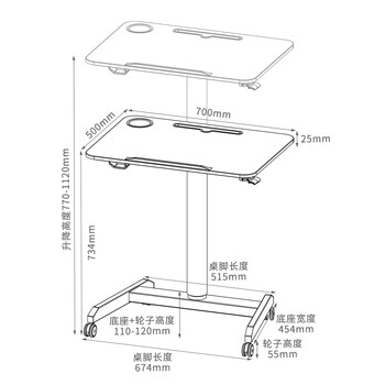 宜客乐思(ECOLUS)升降电脑桌可移动折叠无极升降站立办公床边沙发学习边桌LTT805WT