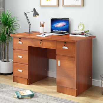 迫不及待 电脑桌职员简约现代台式电脑桌带锁卧室学生家用书桌子工作桌1.2米1.4米带抽屉 (黑胡桃色)