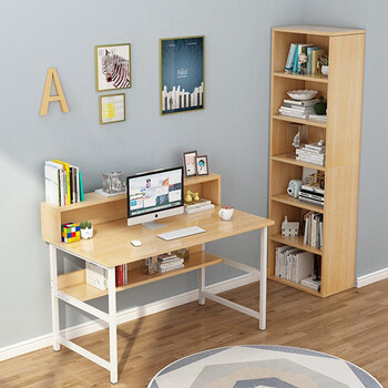 帅力电脑桌 书房双层带书架板式学习笔记本书桌子100*50原色SL8301