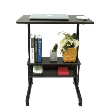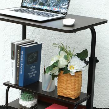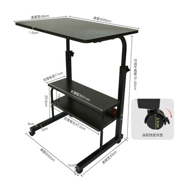 倍方 床边电脑桌 可移动升降学习办公桌 懒人书桌 带置物款 黑胡桃色31879