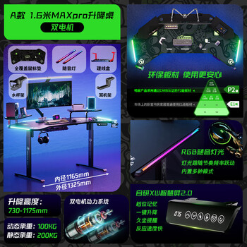 乘胜PRO MAX电竞桌电动升降桌双电机电脑桌台式书桌办公桌学习桌1.6米