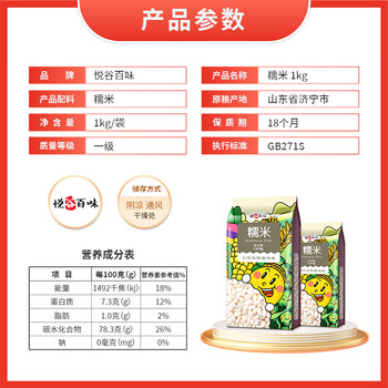 悦谷百味 糯米2斤(五谷杂粮 圆粒江米 黏米 粽子米 粥米搭档 东北粗粮)