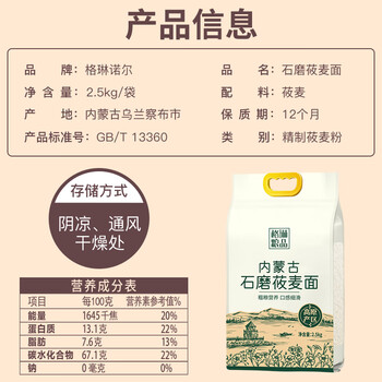 格琳诺尔石磨莜麦面粉5斤 内蒙古特产莜面粉 莜面鱼鱼燕麦粗粮 营养早餐