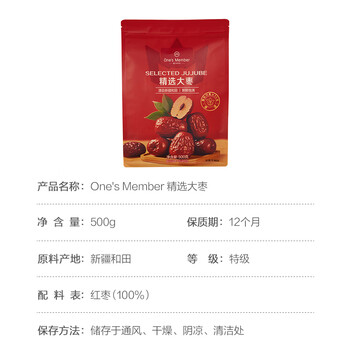 1号会员店 和田大枣 500g 新疆和田产区特等红枣补气血新老包装随机发货