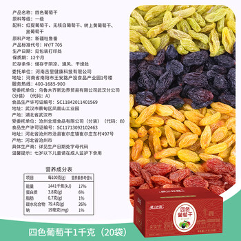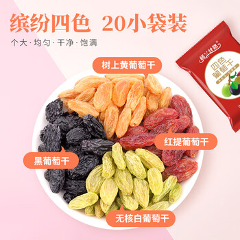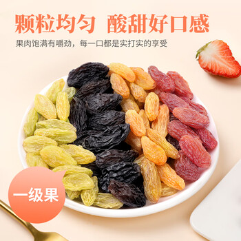 楼兰丝路新疆四色葡萄干1000g 一级黑加仑无核白树上黄红提零食蜜饯年货