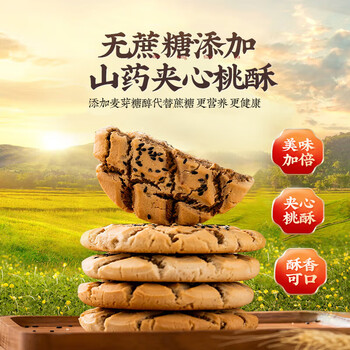 云山半核桃酥饼干500g约12袋铁棍山药黑芝麻夹心0蔗糖糕点 早餐曲奇