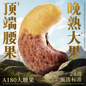百草味本味甄果高端紫皮腰果500g 每日坚果特大果休闲零食罐装团购送礼