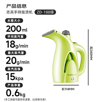 志高(CHIGO)手持挂烫机家用20g/min大蒸汽电熨斗蒸汽刷200ml大水箱便携小型烫衣服熨烫机迷你熨衣服 ZD188