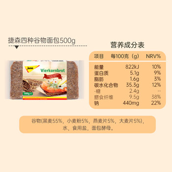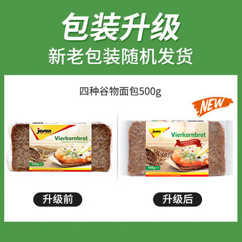 捷森德国进口 四种谷物面包500g/袋 0糖0反式 全麦粗粮低脂健身代餐