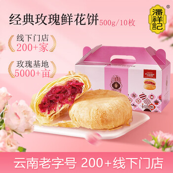 潘祥记 经典玫瑰鲜花饼 云南特产小吃传统糕点心早餐休闲零食 50g*10枚