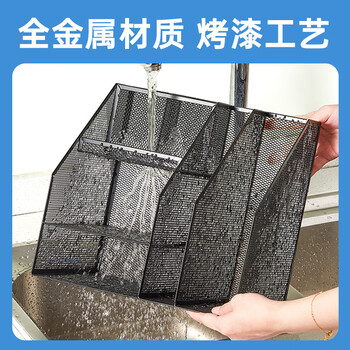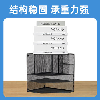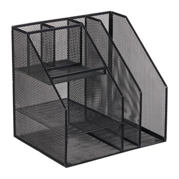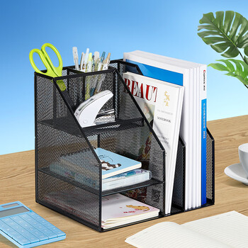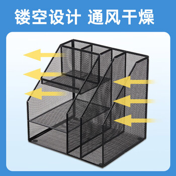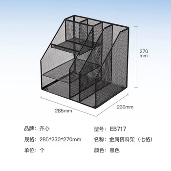 齐心(COMIX)多功能7格金属网材组合式文件框办公室桌面多层资料架子分层收纳文件架带笔筒 黑色B2076/EB717