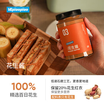 VEpiaopiao配料干净花生酱0白砂糖天然无添加健身调味拌面涂面包净含量220g