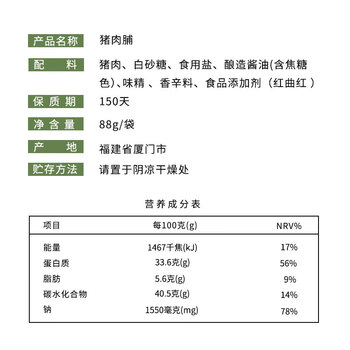 黄胜记猪肉脯88克*1袋