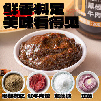 云山半低脂肪0蔗糖黑椒牛肉酱200g 0添加蔗糖黑胡椒意面酱轻食健身牛排