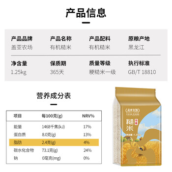 盖亚农场有机糙米2.5斤 (东北五谷杂粮 糙米主食 含胚芽真空装)