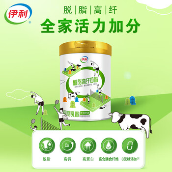 伊利脱脂高纤全家奶粉 成人奶粉 脱脂奶粉 送礼 营养高钙高蛋白 850g