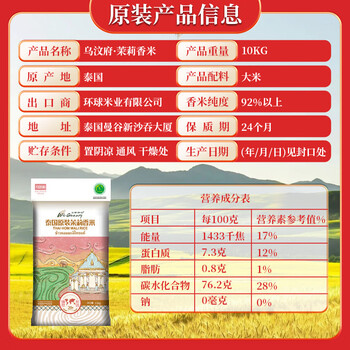 王家粮仓 原装进口乌汶府茉莉香米10kg*1袋