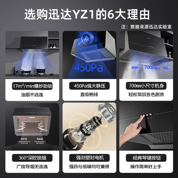 迅达(XUNDA)抽排中式吸油烟机家用小尺寸户型出租房700mm长一级能效按键控制 YZ1