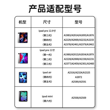 Apple iPad Pro 11英寸;Apple iPad Pro 12.9英寸;Apple iPad mini (第六代);Apple iPad Air (第五代)