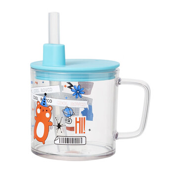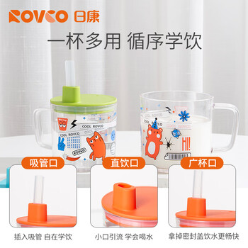 日康(rikang)牛奶杯 儿童水杯带盖吸管带手柄学生水杯240ML B1055-1 蓝色