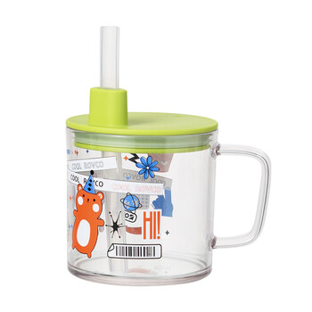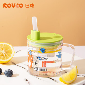日康(rikang)牛奶杯 儿童水杯带盖吸管带手柄学生水杯240ML B1055-2 绿色
