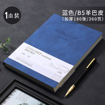 法拉蒙(faramon)B5笔记本本子360页商务本子加厚皮面记事本复古办公文具日记本会议记录本 B5-蓝色