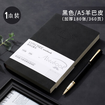 法拉蒙(faramon)A5笔记本本子360页商务本子加厚皮面记事本复古办公文具日记本会议记录本 A5-黑色