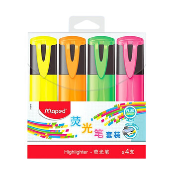 马培德荧光笔4色套装 彩色荧光笔划重点醒目标记笔 儿童学生手账手绘记号笔粗头办公学习文具740916CH