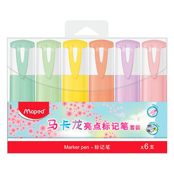 马培德(Maped)马卡龙荧光笔6色套装办公学生文具醒目重点标记笔高颜值荧光笔儿童手抄报手账手绘记号笔 740906CH