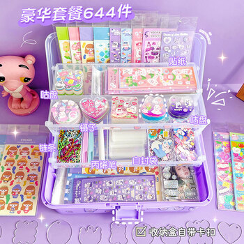 法拉蒙 咕卡贴纸豪华套装咕卡贴纸女孩儿童礼物玩具贴画咕咔盘diy手账工具全套材料包 紫色收纳盒518套餐